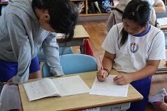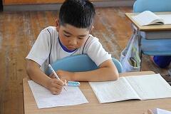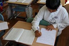 15日(火)の記事で4年生『ごんぎつね』の学習、ごんがつぐないとして栗を持ってきたところ、兵十に見つかり火縄銃で撃たれてしまう場面を紹介しました。4年生は 、自分たちの考えた続き話を発表し合い、感想や意見を交流する学習をしていました。紹介する画像は、一人一人が書いた作品を読み、感想をワークシートに記入している場面です。子どもたち一人一人が心の距離が縮まった『ごんと兵十』の続き話をじっくりと読み、続き話の表現のよさを書き込んでいました。続き話には、兵十の手当によりごんが奇跡的に生き返って仲良く暮らした話、ごんのお墓をつくって、おっかあの墓とともに大切にする話などが書かれてありました。作品を読み終えた後には、友達から自分の作品のよさを伝えられる活動が行われ、改めて自分の表現のよさに気付くことができる学習になりました。
