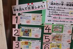 図書館の入り口に2つのコーナーがあります。一つは、夏に都城市で開催された『リト@葉っぱ切り絵展』の関連図書(リトさんの本や葉に関する図書)を紹介するコーナーです。もう一つは、9月11日~10月11日の1か月間『読んでみたい本☆総選挙!』が行われました。内容は、全部で18種類のセット本の中から、読んでみたい本、図書室にあったらうれしい本のところにシールを貼ります。このシールは、図書館で借りた本の数だけもらえます。ご覧のように緑のシールは、全体的に貼られている感じです。子どもたちは、どんな本が図書館に新刊として入ってくるのか結果が楽しみな企画です。最後にどのような種類のセット本があるのか一部を紹介します。『動物の家族絵本』『どアップ!びっくり?昆虫の顔写真えほん』『日本の歴史』『超スペシャルなぞなぞ王国』『手話ではなそう』『まえとうしろ どんなくるま?』