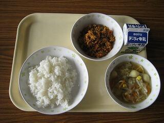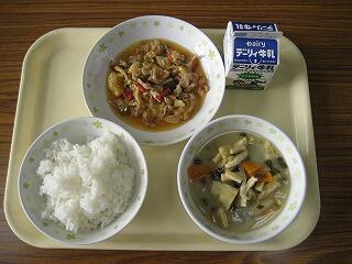 本日のメニューは、ご飯、牛乳、鶏肉の唐揚げ、きんぴらごぼう、小松菜のみそ汁でした。ホームページの不具合で、このコーナーの更新ができていませんでした。本日、不具合の修正ができましたので、今日からまた更新します。
