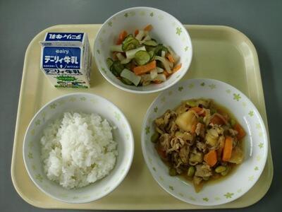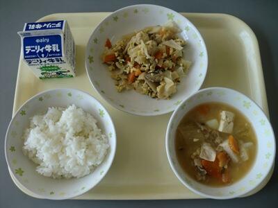 給食では、いかと大根、にんじん、きゅうりが入っていました。