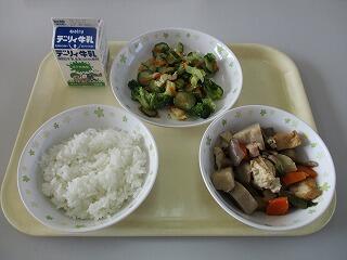 今日の給食は、秋野菜の煮物、いなりサラダ、白ご飯、牛乳です。連休明けの今日は、子ども達にも休み疲れが出ているようで、いつもの元気を感じませんでした。また、全国的には、災害の被害が大きかった3連休となり、自然の恐ろしさを改めて感じさせられましたね。