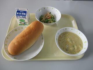 今日のメニューは、白菜のクリーム煮、イタリアンサラダ、コッペパン、牛乳です。