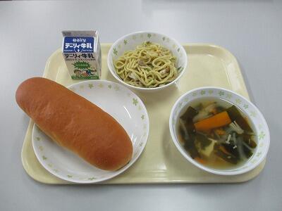 都城では天気予報がいい方に外れて、雨がやんでいます。でもまだまだ安心はできません。今日のメニューは炒めビーフン、コーンスープ、コッペパンとメープルジャム、牛乳です。炒め分ビーフンは子どもたちが大好きです。私も大好きです。