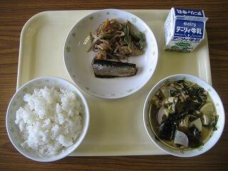 今日のメニューは、ご飯、牛乳、いわしのかぼすレモン煮、ごぼうのきんぴら、若竹汁でした。春の食材をたくさん使ったメニューでした。春の食材はどれだったか、子どもたちは分かったかな。