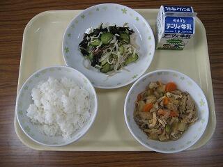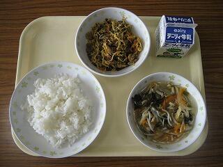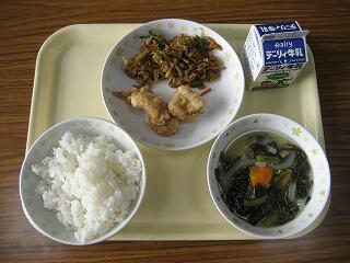 本日のメニューは、ご飯、牛乳、鶏肉の唐揚げ、きんぴらごぼう、小松菜のみそ汁でした。ホームページの不具合で、このコーナーの更新ができていませんでした。本日、不具合の修正ができましたので、今日からまた更新します。