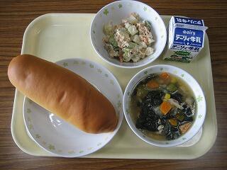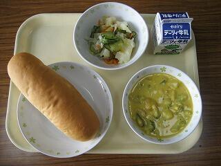 本日のメニューは、コッペパン、牛乳、パンプキンポタージュ、日向夏ドレッシングサラダでした。夏野菜のカボチャですが秋を感じさせる食材ですね。食欲の秋ですから、いっぱい食べて、大きく成長してもらいたいものです。
