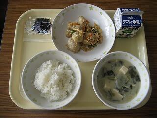 大豆とジャガイモの磯煮に入っているひじきは、昆布やわかめと同じ海藻の仲間です。海藻は、カルシウムなど子どもたちの体が大きくなるために必要な栄養をたっぷり含んでいます。しっかり食べてほしいものです。