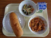 げんりょう黒糖パン、ナポリタンスパゲティ、海藻サラダ、牛乳