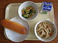 チーズパン、五目うどん、いなりサラダ、牛乳