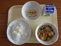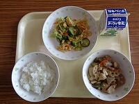 しろごはん、けいちゃん焼き、はるさめスープ、牛乳