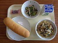 コッペパン、みそラーメン、きゅうりとわかめのあえもの、牛乳