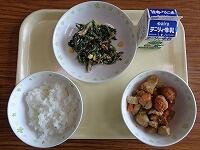 しろごはん、ごまみそ煮、ほうれんそうとツナのあえもの、牛乳