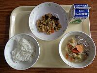 しろごはん、肉じゃが、いかときゅうりの酢の物、牛乳
