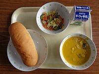コッペパン、パンプキンスープ、フレンチサラダ、牛乳