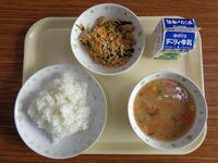 しろごはん、都城なんこつみそ煮、ごまず和え、牛乳