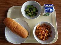 ミルクパン、野菜たっぷりミートスパゲティ、ブロッコリーのサラダ、牛乳
