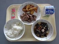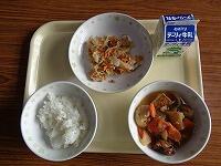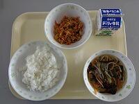 しろごはん、肉じゃが、いかときゅうりの酢の物、牛乳