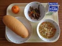 コッペパン、めひかりのエスカベッシュ、洋風かきたま汁、みかん、牛乳