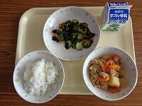 しろごはん、都城なんこつみそ煮、ごまず和え、牛乳