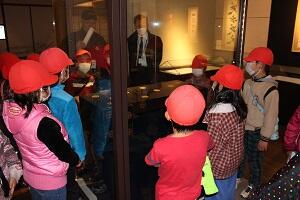 1月23日(金)に、2年生が島津邸の見学に行きました。島津家の説明を聞いた後、紫舟さんの習字の見学をしました。上手な習字に感心していました。また、タッチパネル式の映像も体験したり、都城市のキャラクター「ぼんちくん」に会ったり、楽しい有意義な時間を過ごしました。