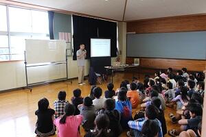 5月1日(金)に、菓子野小学校を卒業され、現在県外の大学の准教授をされている菓子野さんによる授業がありました。小さい頃にどんな小学校生活を送っていたのか、今の仕事と菓子野小での生活がどのように結びついているのか、など昔の写真を交えながら話をしてくださいました。子どもたちも先輩のお話を聞いて、これからの生活に役立ててもらいたいと思っています。