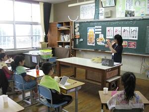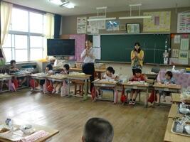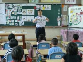 6月23日(火)に、山田小の栄養教諭の先生による、好き嫌いをしないように食べることをテーマにした学級活動の授業がありました。子どもたちは、好き嫌いをしないで食べることの大切さが分かったようでした。また、授業後は、給食を一緒に食べ、食事のマナー指導も行っていただきました。
