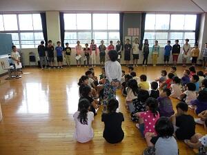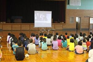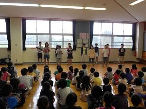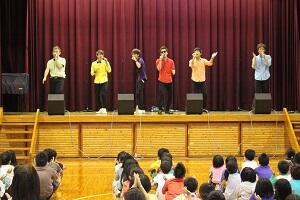 6月5日(金)に菓子野小学校の鑑賞教室がありました。今年度は、アカペラグループ「JARNZΩ」による音楽鑑賞でした。子どもたちは、楽器を使わず、口から出る声だけで上手に演奏していることにびっくりしていました。また、きれいな歌声に聞き惚れました。