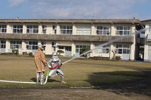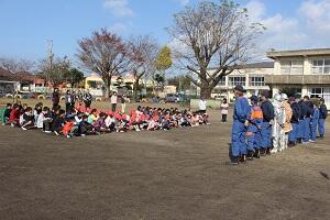 12月3日(木)に火災の避難訓練がありました。家庭科室から出火した設定で、児童は整然と避難できました。また、今年度も庄内地区の消防団の方々に来ていただき、放水訓練や話をしていただきました。