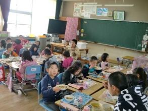 3月11日から18日の6日間で、お別れ交流給食を行いました。卒業を控えた6年生が、グループに分かれ、1~5年生の教室と校長室を日ごとに回り、一緒に給食を食べました。6年生に感謝の気持ちを伝えたり、たくさんお話ししたりと楽しい給食の時間を過ごすことができました。