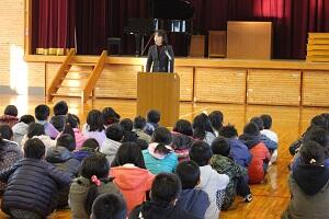 1月24日(火)に3年生の国語の授業の一環として、都城市の国際交流員であるソヨルマーさんに来校していただき、モンゴルのゲルについてくわしく説明していただきました。子ども達も興味深くソヨルマーさんの話を聞いていました。