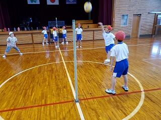 子どもたちも今まであまり経験が無いようで、ボールを上手に打ったり、相手にやさしく渡したりすることが難しいようです。しかし、回数を重ねていくうちに、ラリーが50回続くチームも増えてきました。他にも上手に手にボールを当てることや力の加減など考えてプレーできています。