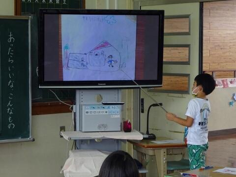 「ほしいな」「あったらいいな」と思うものを想像して絵や文で表し、紹介し合うという活動をしました。