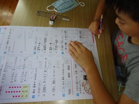 「一生懸命考えながら」「印を付けたりや書き込んだりしながら」問題を解いている様子が、写真から伝わってくると思います。