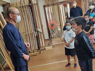 次に「伝統工芸」を学ぶために大弓を作っている横山黎明弓製作所に行き、大弓の歴史や作り方など多くのことを学ぶことができました。