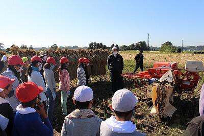 10月26日(月)の2~3校時を使って、稲刈りをした稲の脱穀をしました。JAやJAの青年部のみなさん、ボランティアグループ「そよ風」のみなさんのご協力をいただきました。本当にありがとうございました。