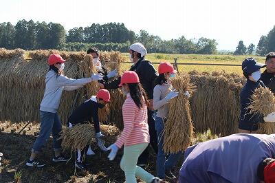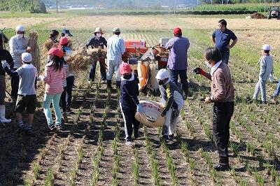 5年生の子どもたちは、初めての脱穀作業でしたが、仕事を分担しながら一生懸命に活動しました。
