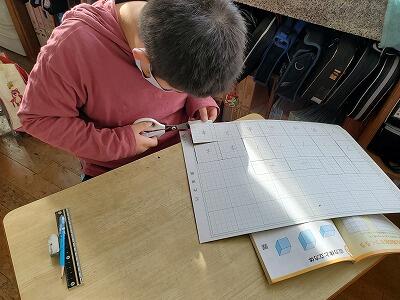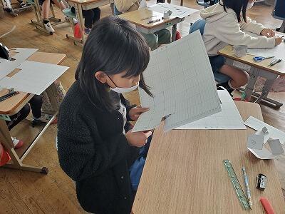 4年生は算数の最後の学習で図形の「直方体と立方体」の学習をしています。見取り図や展開図など様々な角度から図形を観察し、平行な辺や垂直な面などを見つけています。普段の生活の中でもいろんな角度から物事を見ていってほしいですね。
