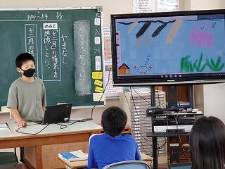 国語の時間に宮沢賢治作「やまなし」という学習をしています。お話の情景を想像し、言葉や絵で表現する学習です。今回は感じたことや考えたこと、不思議なことを絵で表現してもらいました。自分の想像を元に書いていくので正解はありません。お話を読んでどのように自分が感じるか、そして友達はどう考えているのかをお互い発表しながら学習を進めていきました。6年生は自分の考えを言葉できちんと表すことができるので素晴らしいです。