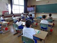 11日に入学した1年生も担任の先生の話をよく聞いて、好きなものなどの発表をしました。そのあとの「だれでしょう?」クイズは大盛り上がりでした。1年生だけでなく他の学年もいろいろな工夫のある授業を楽しんでいました。