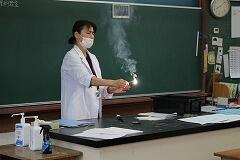 庄内中の先生方により、3つの授業をしていただきました。理科の学習では、3つの実験を通して疑問を解決する楽しさを伝えていました。①マグネシウムを燃やすと何色になる? ②光の3原色は、青、赤ともう1つは何色でしょう? ③筒にした紙に火をつけるとどうなる?(画像の赤丸に注目) 実際に実験を1つずつ行うと『あれ?』と思う驚きの言葉が次々と発せられる授業でした。