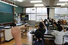 4年生は、国語『未来につなぐ工芸品』の学習の最後に、一人一人が興味をもった工芸品の魅力を調べる活動を行っていました。今日は、調べまとめたものの発表会です。画像は、『房州うちわ』、『境打刃物(さかいうちはもの)』、『肥後象がん』の発表の様子です。特に、象がんが工芸品になった理由を説明するときに、明治時代に廃刀令が出され、需要が少なくなったことをわかりやすい言葉で行っていました。この活動を通して4年生は、日本全国には、たくさんの素晴らしい工芸品があることを知りました。また、その工芸品には、歴史や魅力がたくさんあふれていること、それを未来につなげていきたいとも感じていました。