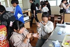 4・5年生は、講師の江夏敬子先生をお招きして、『味覚の授業』で味の不思議を学習しました。講師の先生は、『五味』について実際に味を確かめながら学習を進めました。プレートに並べた砂糖、塩、お酢などの調味料を口に含み、味が甘味、塩味、苦味、酸味であることを確認しました。その後、細く切った昆布を口に含み5つめの『うま味』を体感しました。また、「味はどこから感じる?」の問いに対して、子どもたちは「舌」と答えました。鼻をつまんで甘いお菓子を食べると、甘みを感じないことを体験し、味覚には香りも関わっていることを学びました。さらに、美味しく感じた場面の味と記憶(脳)がつながるように、舌だけではなく体の様々な部分で感じることも学びました。子どもたちは、味蕾(味を感じるところ)がたくさんあり、大人に比べて味がしっかり感じられるそうです。この年齢でしか感じえない感覚をこの授業で養うことができたようです。江夏先生、ありがとうございました。