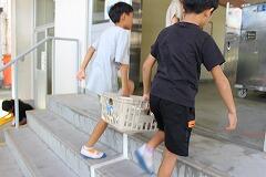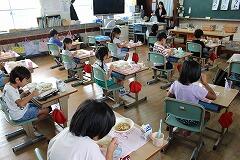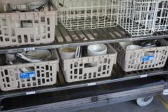 2学期から、軽量で割れにくいPEN樹脂食器に変わります。これまでは、強化磁器食器で磁器ならではの味わい深い食事ができていましたが、児童が運んだり配膳したりするときには、重さが影響していました。大皿では『245g→111g』、深皿では『180g→82g』と半分以下の重さになります。運ぶときも当番の人数が減りますし、低学年にも運びやすいものとなります。新しい食器を大切に使いながら、おいしく給食を食べていきたいですね。