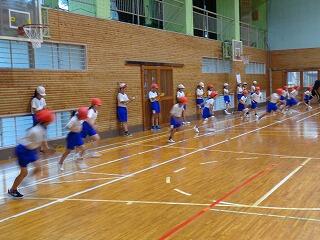 菓子野小では、12日から体力テストが始まります。今日は、体育館で2年生と5年生がシャトルランの練習をしていました。2年生が走るのを5年生が応援しながら記録していました。2年生もはりきって走っていました。