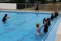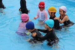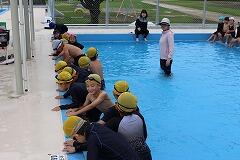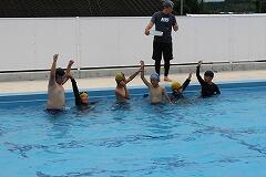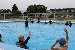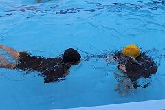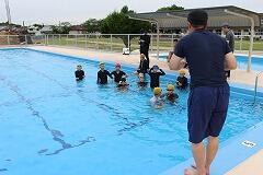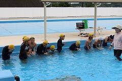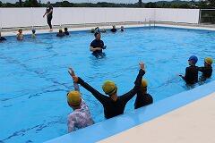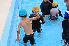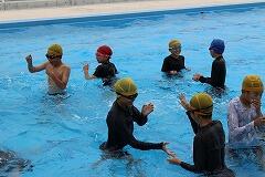 昨年度、プールの改修が行われ、ピカピカのプールに生まれ変わりました。令和6年度のプール開きが、5・6年生合同で1番目に行われました。体育振興指導教員による小学校派遣事業として、高校体育の専門の先生に先週研修をしていただきまして、本日5・6年生が、1回目の授業を受けました。やはり一番大切にしていることは、児童の安全を守ることですので、活動の節目ごとにバディシステムによる人数確認とお互いの健康チェックを行っていました。水温は、適温で気持ちがいいと子どもたちは言っていました。活動の中盤では、水中じゃんけんをして、水中でのジェスチャーゲームを行いました。子どもたちは、『ゴリラ、野球、バスケットボール』など大きな動きでわかりやすいジェスチャーをして、お互いに正解したことを喜び合っていました。また、水底に落とした宝物(短いホース)を全員が1個ずつ1分以内に拾うゲームでは、拾っていない友達への声かけが大切になってきます。見事58秒でクリアすることができ、大喜びのかしのっ子たちでした。