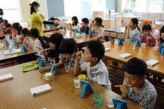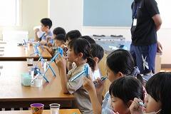 来週から毎週金曜日の朝の時間にフッ化物洗口を希望児童のみ行います。本日は実施の前に水を口に含んだ洗口練習を行いました。昨年度の振り返りも兼ねて全員で洗口の手順を確認しました。CDの音楽に合わせて口の中でクチュクチュします。先生の話をしっかりと聞いて真剣な中での練習ができました。
