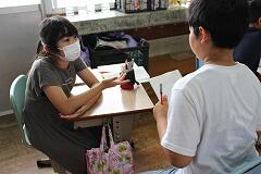 5年生の教室をのぞくと友達にインタビューをしている学習でした。班ごとにインタビューの順番を決め、話し手との関わりを思い出しながら、聞いてみたい話題をいくつか挙げ、今日は決まった話題についてインタビューをする学習でした。インタビューされる友達の人柄を引き出せそうな質問を事前に準備して行っていました。画像はそのときの様子です。また、インタビューのメモは、キーワードを書き残し、図式的にまとめていました。インタビュー後の感想として、「友達から筆算の上手なやり方を聞き取ることができてよかった」と全体に伝え、計算が好きな友達の一面を聞くことができたことを確かめ合っていました。