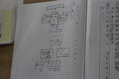 3年生 社会科の学習で菓子野地区のまちの様子について学習してきました。これまでの学習で、教科書の写真や配布された菓子野地区の様子が分かる航空写真を見ながら、気付いたことをノートに記入してきました。また、先日『まち探検』も行い、実際に見学することで、大きな道路、住宅が多いところ、畑や水田が多いところを調べていました。見学を終えて、菓子野地区の地図を2つの班に分かれて作成していました。作成途中でわからなくなった部分については、タブレットで実際の航空地図を見ながら確認して作成していました。