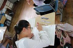 4年生が、垂直と平行の描き方を学習した後に、長方形と正方形を描いていました。2種類の三角定規を上手に使って描く学習でした。1枚の三角定規は固定し、もう一枚の三角定規を動かし平行の線を描くところが難しそうでした。たくさん描いて上手になってくださいね。次に2年生が、引き算の筆算の学習をしていましたので紹介します。2位数の筆算の答えを確かめる方法として、(答え)+(ひく数)=(ひかれる数)になっていることを理解して、ひき算の答えを確かめる練習をしていました。問題を一生懸命に解いている姿に目が止まりました。早く終わった児童は、タブレットを用いて更に練習を積み重ねたり、たし算の問題に取り組んでいました。また、ヒントがほしい児童は先生のところに行って、わからないところを質問していました。一人一人の理解の具合に応じて対応していました。