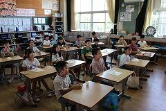 今週は、芋の苗植え週間になっています。早速1・2年生が芋の苗の準備等をしてくださった地域の方に教えていただきながら1本1本を丁寧に植えていました。植えた後は、根元にたっぷりの水をあげています。指導していただいた方から「明日も水をあげてね。」と言われると「は~い。」と子どもたちは応えていました。10月には芋の収穫がありますので、それまでお世話をしっかりとして大きく育ってほしいですね。